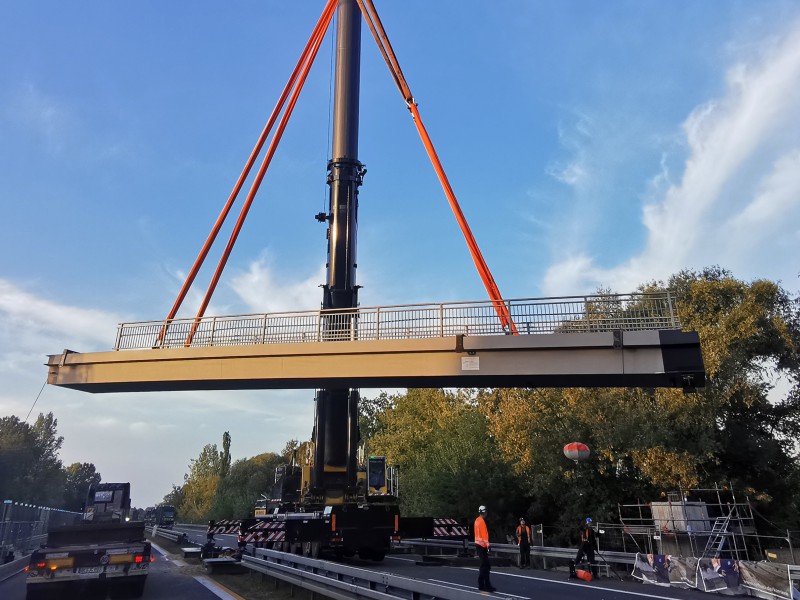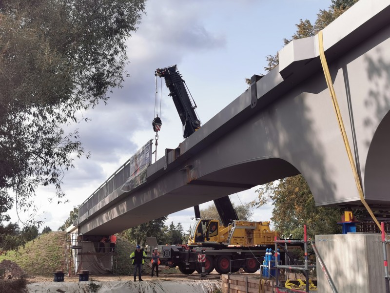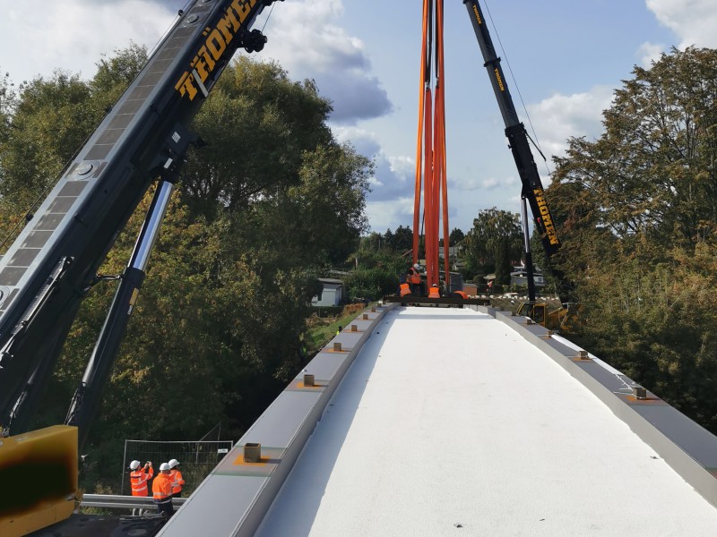 Der Überbau wurde als dicht geschweißter Hohlkasten mit veränderlicher Bauhöhe aus Stahl
