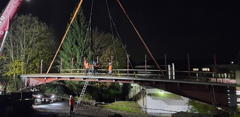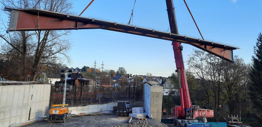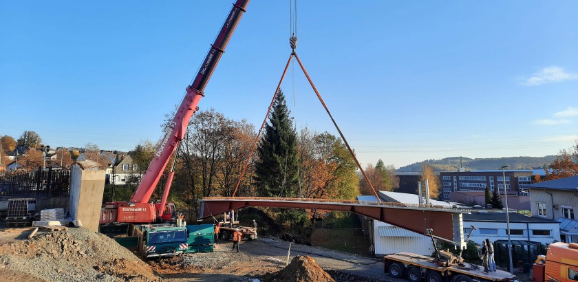 Der Einhub des Stahlbaus inkl. Stahlbeton-Verbundplatte erfolgte am 31.10.2020, 146 to Stahlbau zzgl. Beton.
