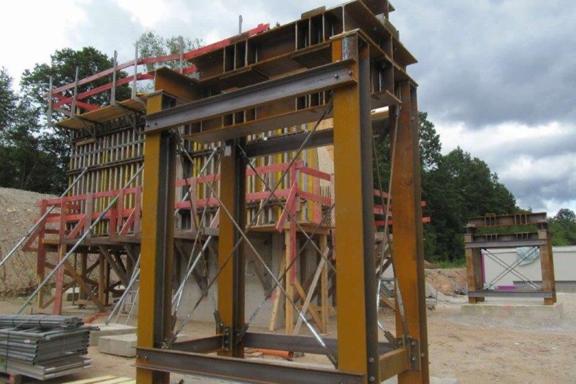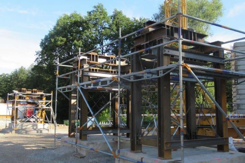 Der Stahlüberbau wird im Werk in einzelnen Schüssen gefertigt.