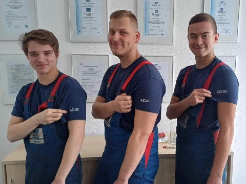 Unser Lehrausbilder Christoph Spitzer konnte allen Dreien mitteilen, dass sie die Probezeit bestanden haben.