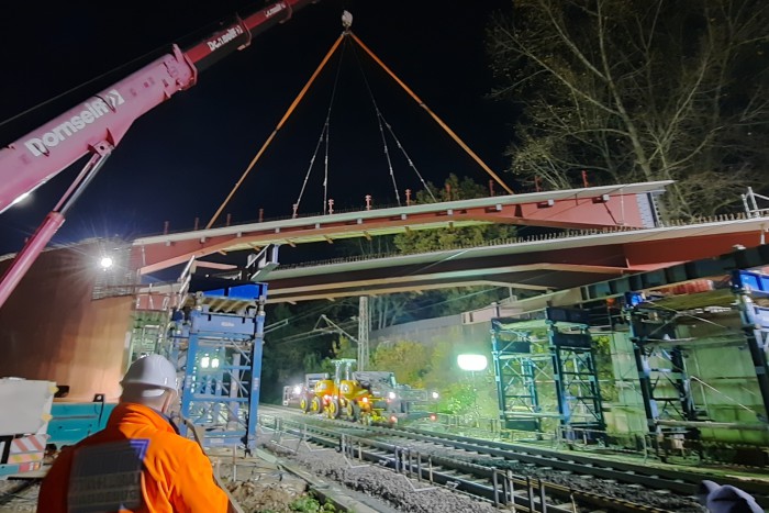 Der Überbau besteht aus einer Kombination aus Stahlverbundträger mit werkseitig aufbetonierten