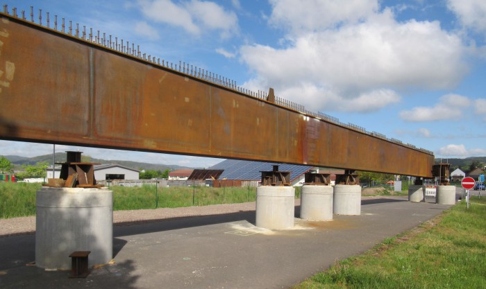 Die Stahlverbundträger sind als Kleinhohlkästen und entsprechend der Trassierung gekrümmt auszubilden.