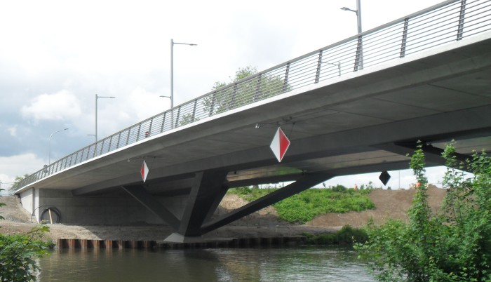 Die bestehende Straßenbrücke aus Spannbetonfertigteilen aus den 60er Jahren wird aufgrund gravierender Bauwerksschäden erneuert.