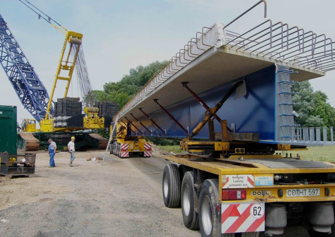 Beim Überbau handelt es sich um eine Stahlverbundkonstruktion, bestehend aus Stahlverbund-Halbfertigteilen und der mit diesen im Verbund stehenden Stahlbeton-Fahrbahnplatten.