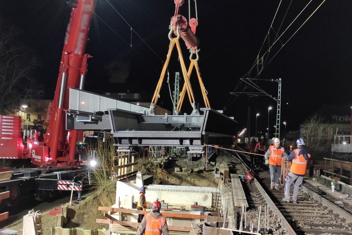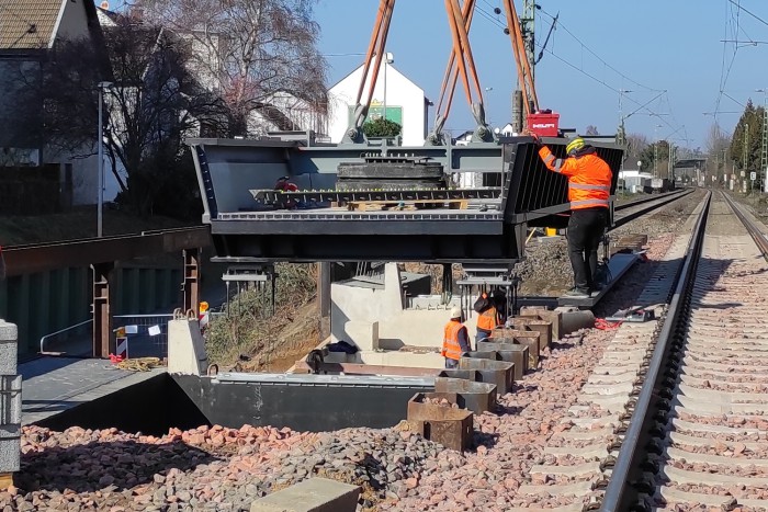 Auf dem Überbau wird beidseitig eine Gehwegkonsole mit integriertem Kabeltrog geführt.