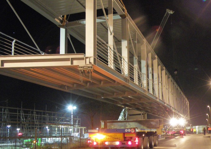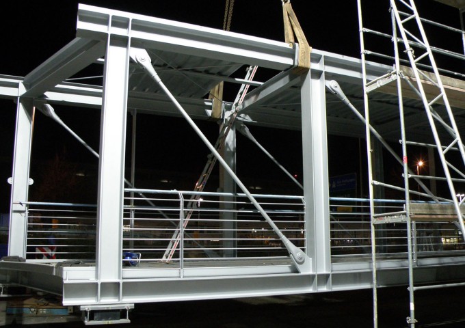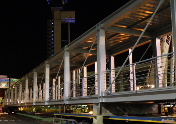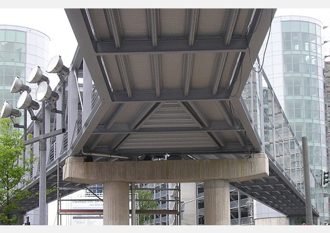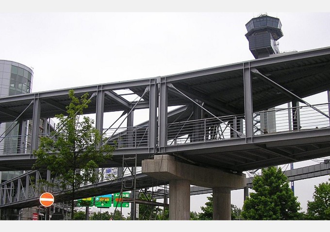 Die Flughafen Düsseldorf GmbH realisierte die Anbindung des Parkhauses PH 7 und des Mietwagenzentrums an die Flughafengebäude mittels einer überdachten Fußgängerbrücke.