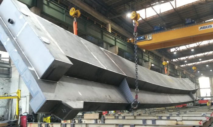 Der Überbau wird als dicht geschweißter Hohlkasten mit veränderlicher Bauhöhe aus Stahl