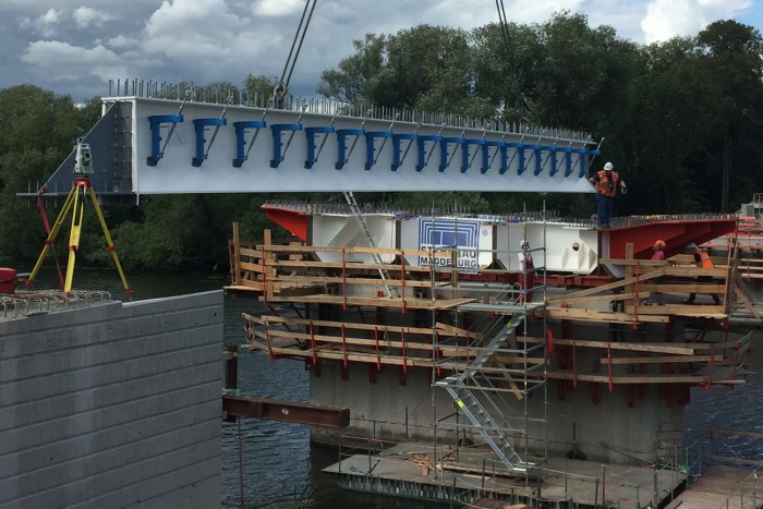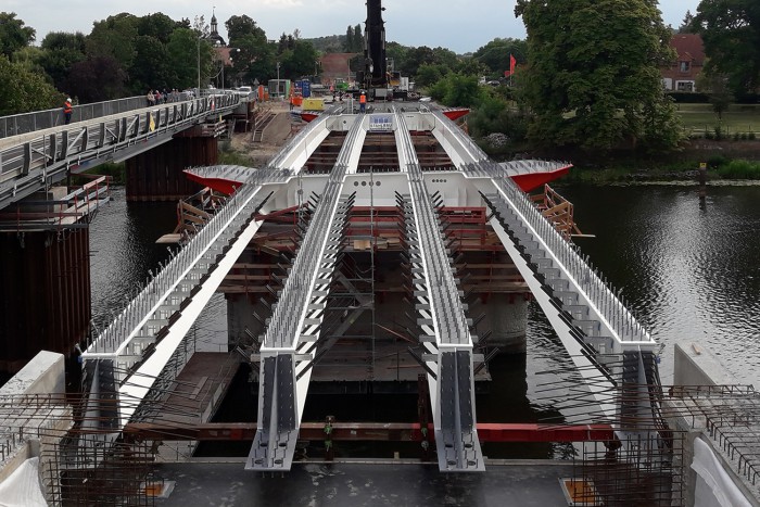 Das neue Brückenbauwerk wird als Balkenbrücke in Stahl-Verbund-Bauweise über 3 Felder