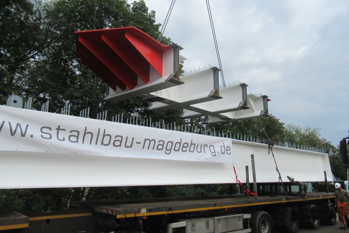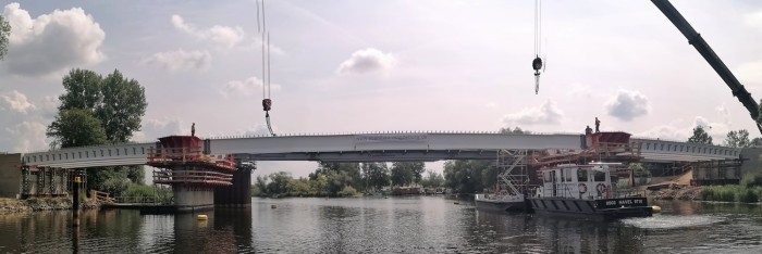 und 21,775 m ausgeführt. Der Querschnitt besteht aus einem vierstegigen Stahlverbundquerschnitt