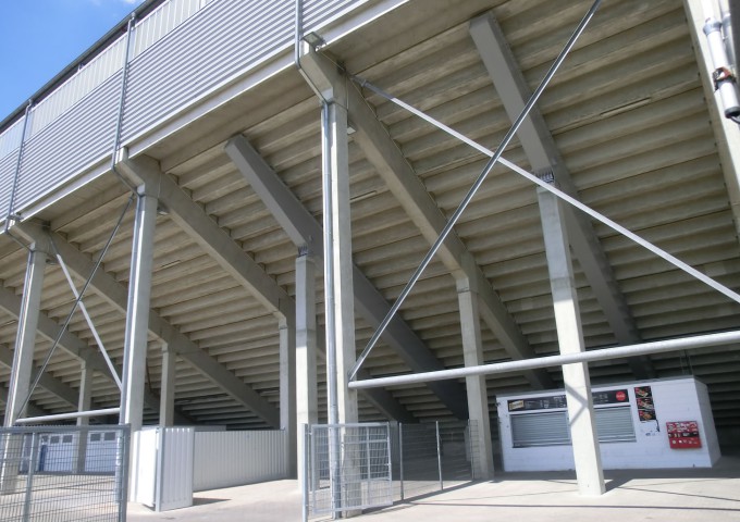 Magdeburg für insgesamt 2 Tribünenfelder durch die Anordnung je eines Mittelträgers zwischen den Bestandszahnbalken. Somit erhalten die Tribünenstufenelemente eine zusätzliche Unterstützung.