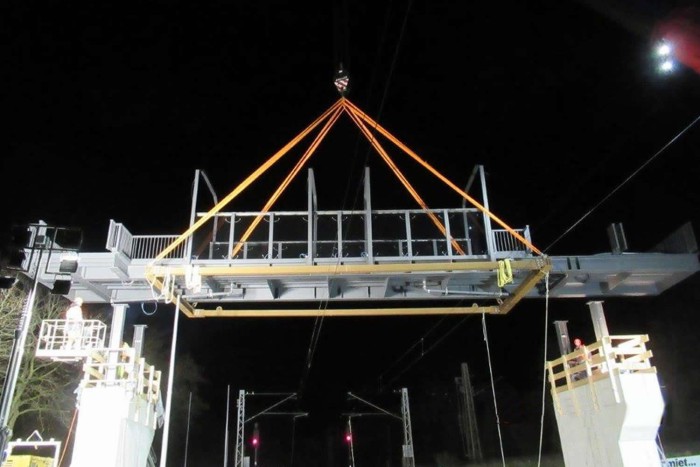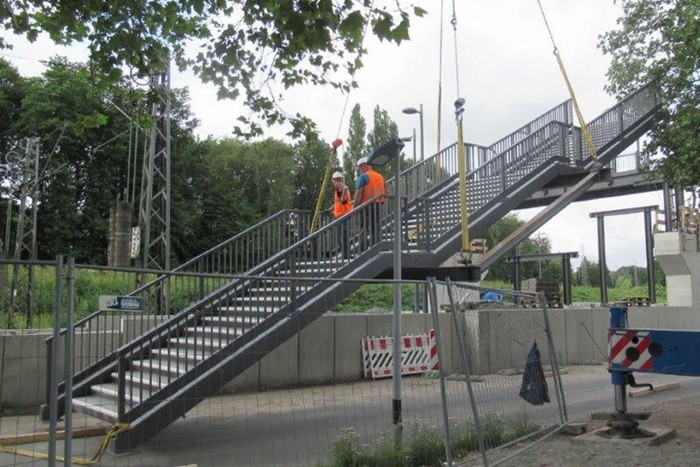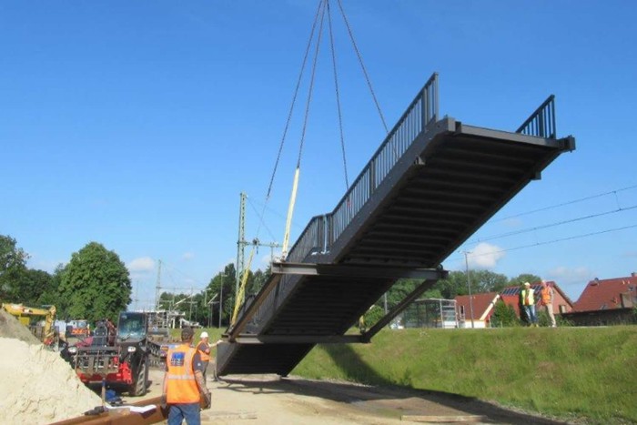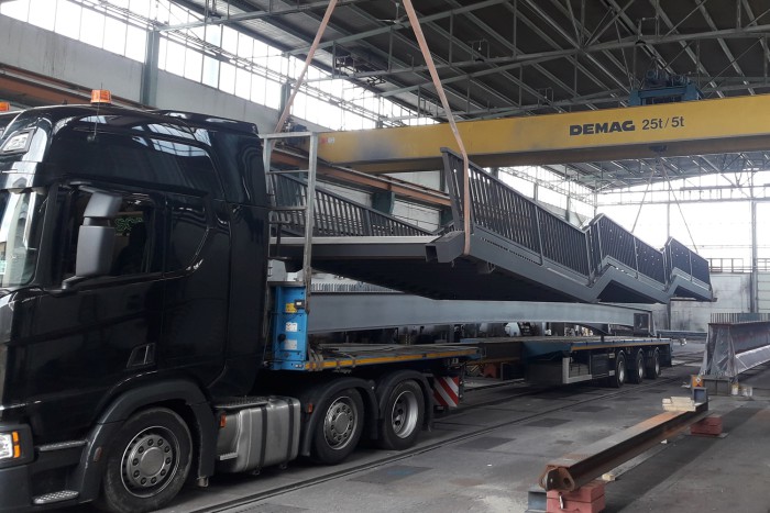 Die Lieferung der Stahlbauteile (Personenüberführung) erforderten Großraum- bzw. Schwertransporte.
